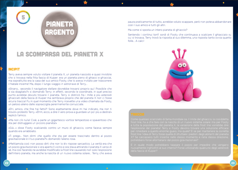 I racconti creati sono partiti da sei incipit proposti, e la classe che ha vinto il concorso, la 1 B, ha scelto l’incipit legato al pianeta d’argento. Il racconto ha il titolo “La scomparsa del Pianeta X”.