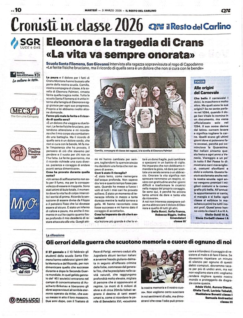Anche quest’anno la nostra Scuola Secondaria di I Grado “S.Filomena” partecipa al progetto de Il Resto del Carlino.